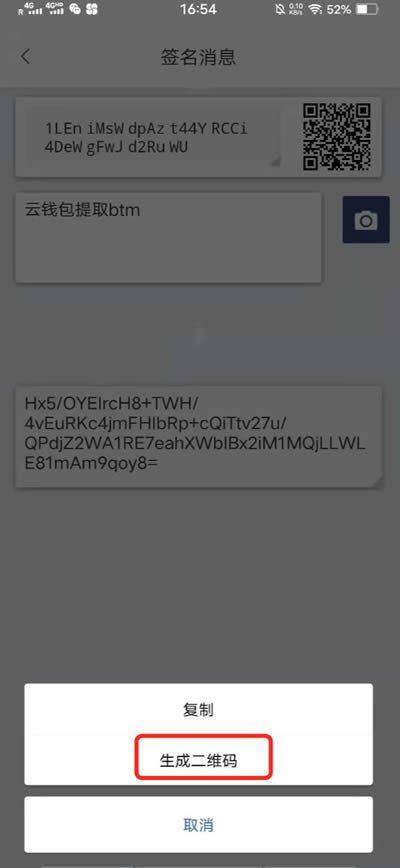 4、 签名过的签名消息,可进行复制或生成二维码