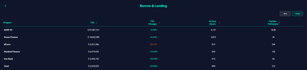其余的借贷平台,如 dForce,Hundred Finance 等都是多链部署的借贷协议,但是整体的 TVL、LTV 都不算太强势。