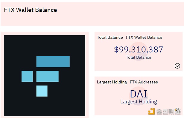 据Dune Analytics最新数据显示,FTX钱包内持有的代币总价值已跌破1亿美元,截至目前为99,310,387美元,当前FTX持有价值最大的代币为DAI,总计42,762,980枚,约合42,905,424美元,占比约43.2%。