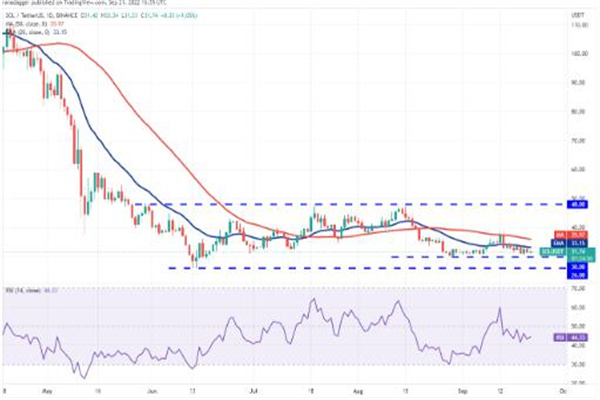 Solana ( SOL ) 从 30 美元的即时支撑位反弹,但多头无法将价格推高至 20 天均线 (33 美元) 以上。这表明空头在较高水平上活跃。