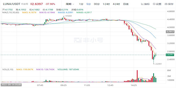 由于俄乌战争与美联储加息**升温等关系,导致全球的数字货币在一夜之间暴跌,现如今LUNA币的实时价格为17.7809人民币,贴合美元2.6389,相比昨日LUNA币的价格迎来暴跌,暴跌指数为37.88%,约合下跌10.8421人民币,截止于今日LUNA币24H最高:¥31.5425、24H量:2.75亿、24H最低:¥15.1059、24H额:¥49.3亿、24H波幅+108.81%、量比:0.53。