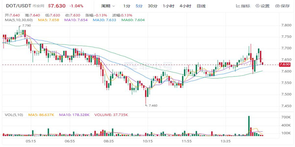 波卡币现在最新价格为:51.7694人民币,约合7.6832美元,相较于昨日相比,DOT波卡币今日价格略微下跌:0.28%,截止于今日24H最高:¥54.2260、24H量:6353.29万、24H最低:¥50.4325、24H额:¥32.9亿、24H波幅+7.52%。