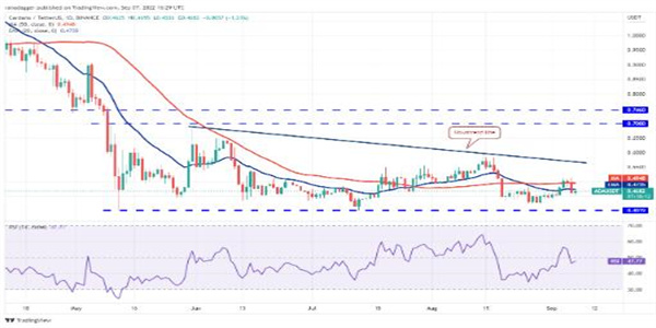 ( ADA ) 于 9 月 4 日收于 50 天简单移动平均线 (SMA) (0.49) 上方,多头在 9 月 5 日守住了该水平。买家试图在 9 月 6 日延续反弹行情,但遇到了障碍售价接近 0.51 美元。