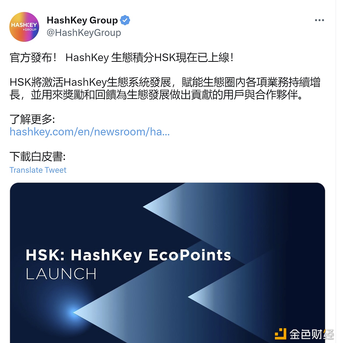 4月12日消息,数字资产金融服务提供商HashKey Group宣布推出生态积分HSK,总供应量为10亿枚,其中65%的HSK将分配给生态增长,30%分配给团队,5%分配给储备金。HSK将作为使用HashKey交易所业务的奖励发放,未来将扩展到更多业务线奖励计划。HSK将定期从循环供应中回购和销毁,以抵消奖励分配的稀释效应。
