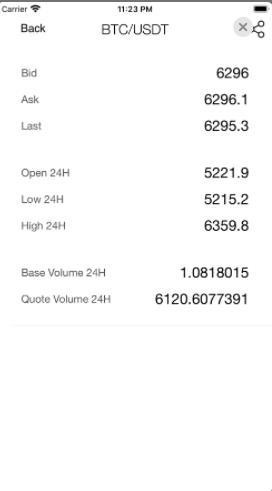 应用程序为您提供数据,如出价、要价、最后价格、24小时开盘、24小时高位、24小时低位、24小时成交量、变化百分比等。