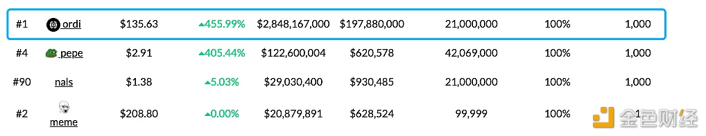 数据显示,比特币铭文代币Ordi突破100美元,暂报112美元,24小时涨幅359%,总市值达23.53亿美元。