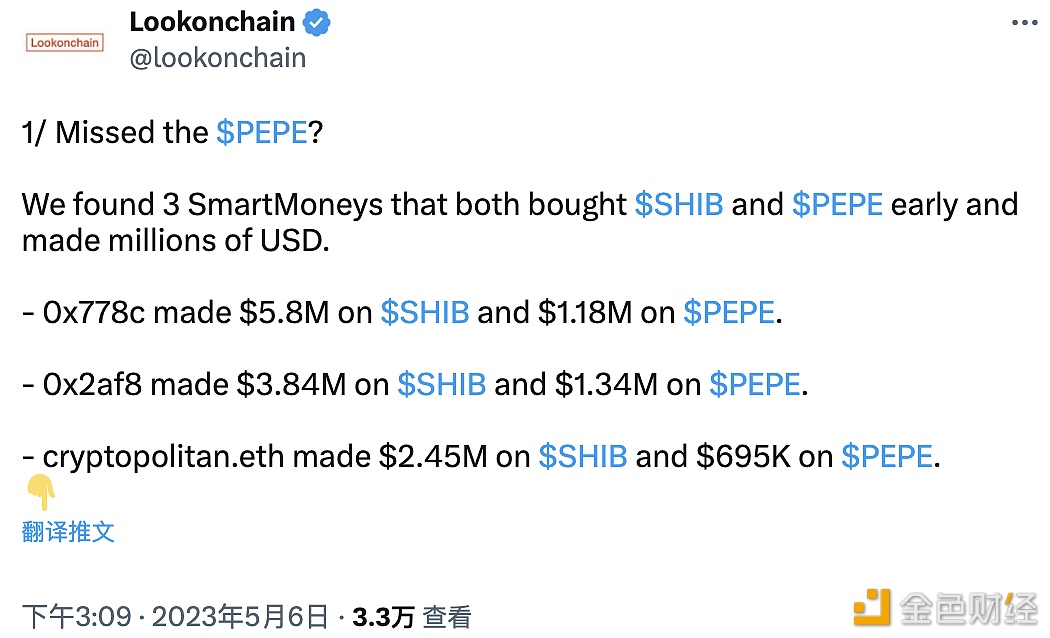 LoGate.ioonchain监测数据显示,有3个聪明钱地址都在早期买入SHIB和PEPE,赚了数百万美元。0x778c通过交易SHIB和PEPE分别赚了580万美元、118万美元。 0x2af8通过交易SHIB和PEPE分别赚了384万美元、134万美元。cryptopolitan.eth通过交易SHIB赚了245万美元,通过交易PEPE赚了69.5万美元。