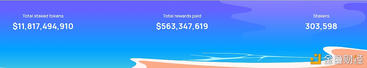 据Lido官网数据显示,其平台质押者总量已突破30万个,本文撰写时达到303,598个,当前平台质押代币(ETH、MATIC和SOL)总价值约合118.1亿美元,已支付质押奖励价值约合56.3亿美元。
